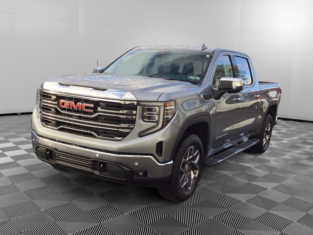 SLT Convenience Package: Ventilated Driver and Front Passenger Seats; Power Rake and Telescoping Steering Column; Premium Bose 7-Speaker Sound System; Floor-Mounted Center Console; Wireless Charging; Front Bucket Seats. X31 Off-Road Package: 265/65R18SL AT BW Tires; 2-Speed Transfer Case; Hill Descent Control; Dual Exhaust System; Off-Road Suspension; Skid Plates; Heavy-Duty Air Filter; X31 Hard Badge. SLT Premium Plus Package. ProGrade Trailering System: In-Vehicle Trailering System App; Hitch View. Sierra Safety Plus Package: Rear Cross Traffic Braking; HD Surround Vision; Trailer Side Blind Zone Alert; Rear Pedestrian Detection; Ultrasonic Front and Rear Park Assist; Safety Alert Seat; Trailer Camera Provisions. Preferred Equipment Group 4SA: HD Rear Vision Camera; LED Cargo Area Lighting; Remote Vehicle Starter System; Electric Rear-Window Defogger; 5.3L EcoTec3 V8 Engine; Theft Deterrent System (unauthorized Entry); Chrome Header and Chrome Grille Insert Bars; 170 Amp Alternator; Auxiliary External Transmission Oil Cooler; Front Rain-Sensing Wipers; GMC Pro Safety; Trailering Package; 120-Volt Interior Power Outlet; 18" X 8.5" 6-Spoke Machined Aluminum Wheels; 2 Charge/data USB Ports; Steering Wheel Audio Controls; 2 type-C Charge-Only Rear USB Ports; Color-Keyed Carpeting Floor Covering; OnStar Services Capable; Power Front Passenger Windows with Express Up/down; Deep-Tinted Glass; 6-Speaker Audio System Feature; Power Rear Windows with Express Down; Integrated Trailer Brake Controller; SiriusXM with 360L Trial Subscription; Single Speed Transfer Case; Power Front Windows with Driver Express Up/down; Manual Tilt-Wheel and Telescoping Steering Column; Front Frame-Mounted Black Recovery Hooks; Keyless Open and Start; Wi-Fi Hotspot Capable; Perimeter Lighting; Push Button Start; Rear Wheelhouse Liners; Auto-Locking Rear Differential; Power Door Locks. SLT Preferred Package: Heated 2nd Row Outboard Seats; Power Sliding Rear Window with Rear Defogger; Adaptive Cruise Control; Universal Home Remote. 20" Polished Aluminum Wheels. Chrome Wheel to Wheel Assist Steps. Spray-On Pickup Bedliner with GMC Logo. Sterling Metallic. 275/60R20SL AT BW Tires. 265/65R18SL AT BW Tires. **Equipment listed is based on original vehicle build and subject to change. Please confirm the accuracy of the included equipment by calling the dealer prior to purchase.**
